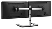 The VFS-DH freestanding desk mount is an ideal accessory for any dual or single monitor application. Both monitors can be independently adjusted up to 20° in any direction and rotated between landscape and portrait orientations. The unique QuickShift™ lever provides independent horizontal adjustment without the need for a single tool. An elegant design with a footprint of 16.61” x 12” leaves your desk clear of clutter. The freestanding base provides flexibility to be located anywhere on the desk. This mount can be converted into a single display configuration by attaching one of the VESA heads directly onto the vertical post.